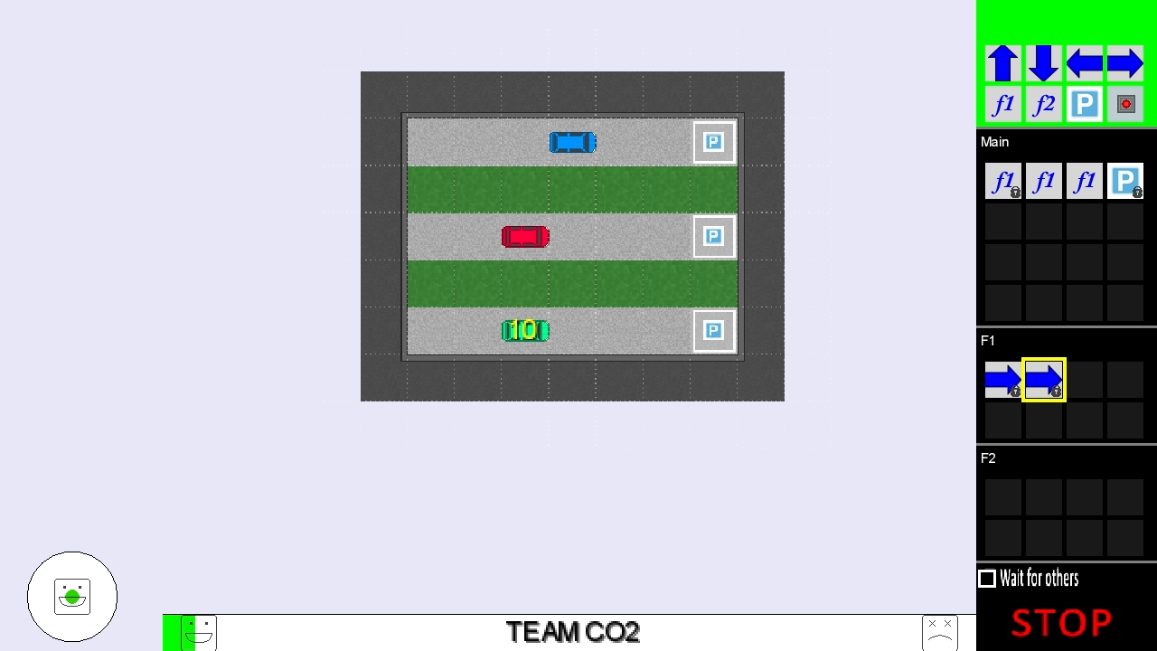 This is a grid based puzzle game where you use commands and functions to control cars to get them to parking spaces. The game used three computers connected to a server so each player controlled a car. The purpose of the game was to teach basic concepts of programming, problem solving and teamwork, while adding a small message on environmental awareness. The game was made for a nationwide school event called Blue Fusion, which students from schools around the Hampshire area came to compete against each other by playing games like Clean Commuter in order to gain interest in science, technology and maths.