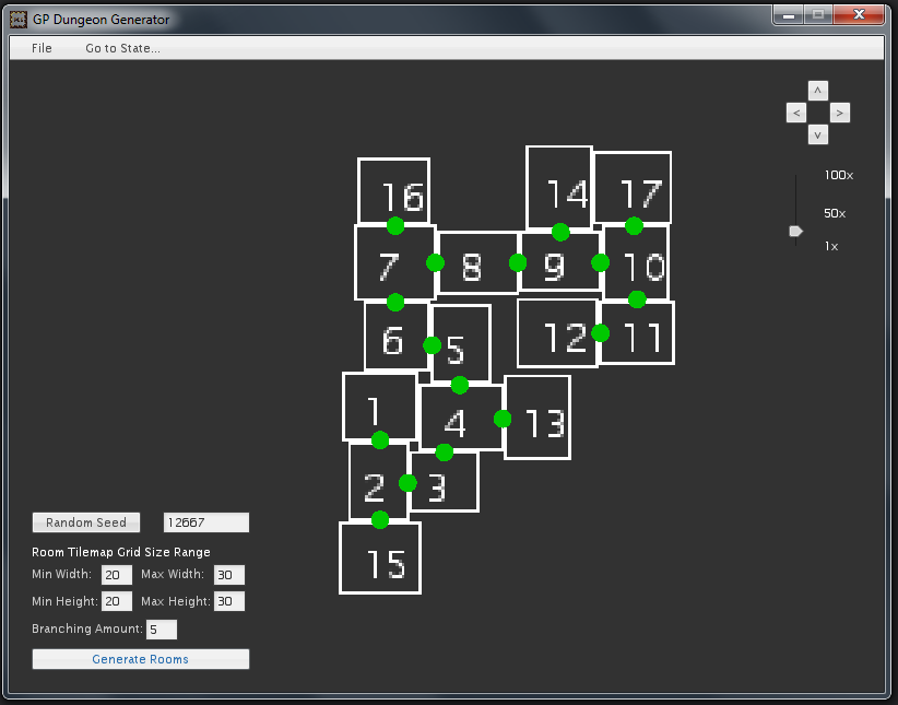 As the name implies, the Procedural Level Editor is a tool and library combination that generates a multi-room level for various games. The Level Editor itself is used to experiment and modify the parameters of the level generator, these parameters are saved to a properties file which is then loaded into a class that uses it to generate levels into data that can be used in a game. The library itself is written in C++, using standard library and template functionality, although it uses RapidJSON to handle loading and parsing the property file.